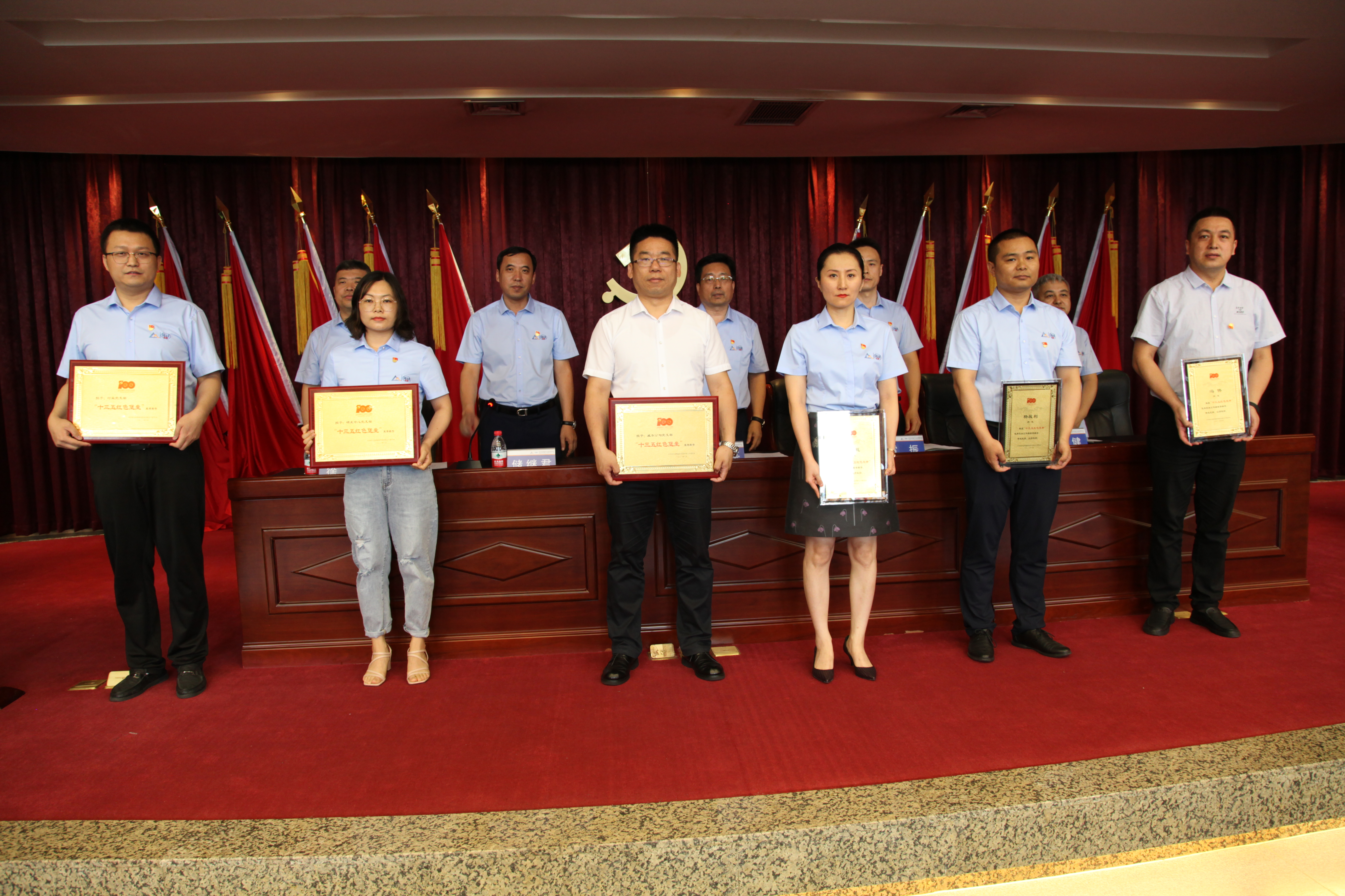 會議在莊嚴(yán)國歌聲中拉開序幕。2020、2021年新發(fā)展的黨員高舉右拳莊嚴(yán)宣誓,鏗鏘有力的誓言表達(dá)了為共產(chǎn)主義事業(yè)奮斗終身的決心。隨后,黨委委員、副總經(jīng)理雷振代表黨委宣讀了先優(yōu)表彰決定,領(lǐng)導(dǎo)班子成員為受到表彰的先進(jìn)集體和優(yōu)秀個人頒發(fā)獎牌。