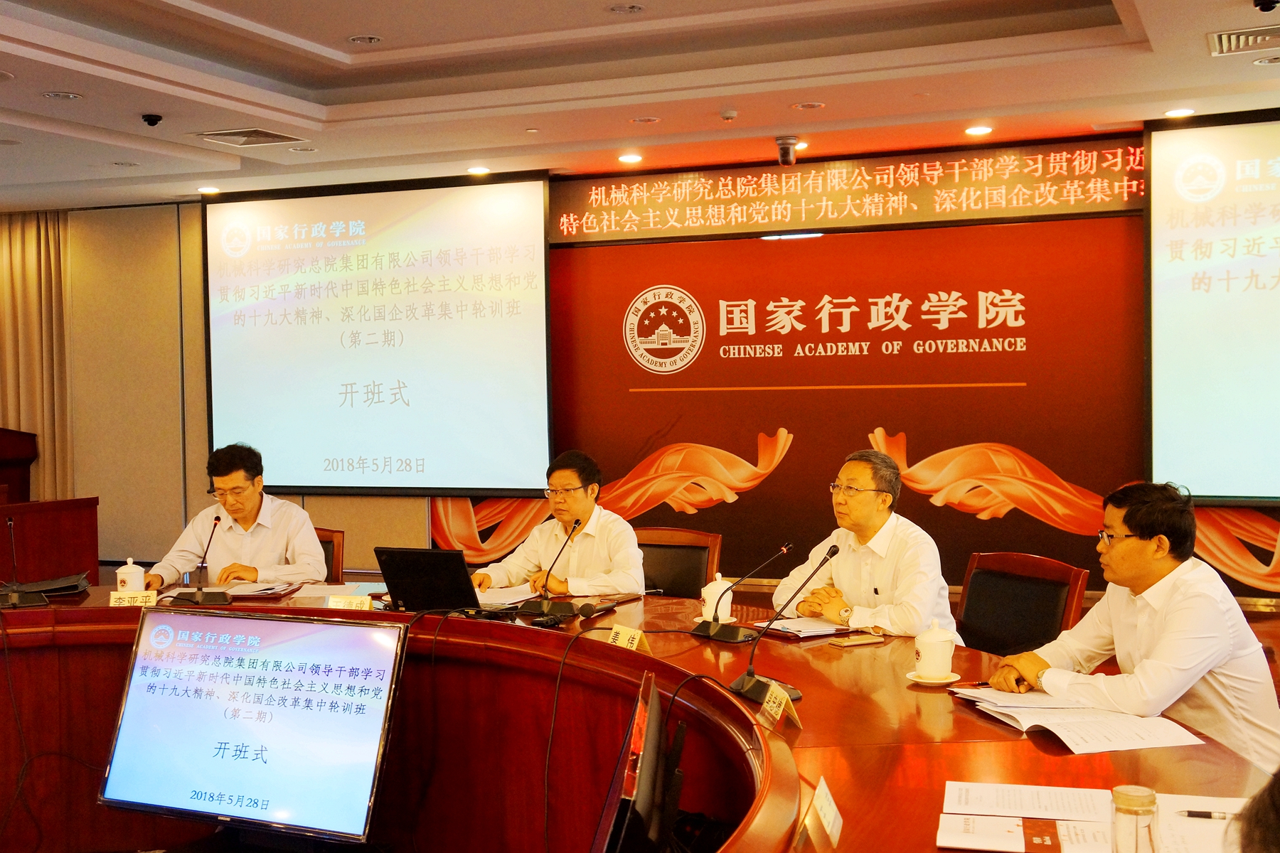 5月28日至6月1日,機(jī)械總院集團(tuán)領(lǐng)導(dǎo)干部學(xué)習(xí)貫徹習(xí)近平新時(shí)代中國(guó)特色社會(huì)主義思想和黨的十九大精神、深化國(guó)企改革集中輪訓(xùn)班(第二期)在國(guó)家行政學(xué)院成功舉辦。集團(tuán)黨委書(shū)記、董事長(zhǎng)、總經(jīng)理王德成出席開(kāi)班式,并為學(xué)員講授第一課。集團(tuán)黨委副書(shū)記、副總經(jīng)理李亞平, 集團(tuán)副總經(jīng)理單忠德,總部中層干部、各直屬單位部分領(lǐng)導(dǎo)班子成員、董監(jiān)高人員參加培訓(xùn)。