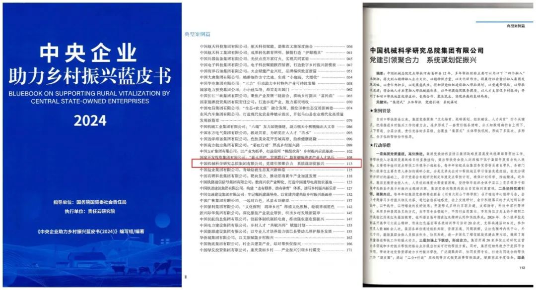 國務院國資委發布了《中央企業助力鄉村振興藍皮書(2024)》,集團申報的《黨建引領聚合力 系統謀劃促振興》案例成功入選了2024年中央企業助力鄉村振興典型案例。